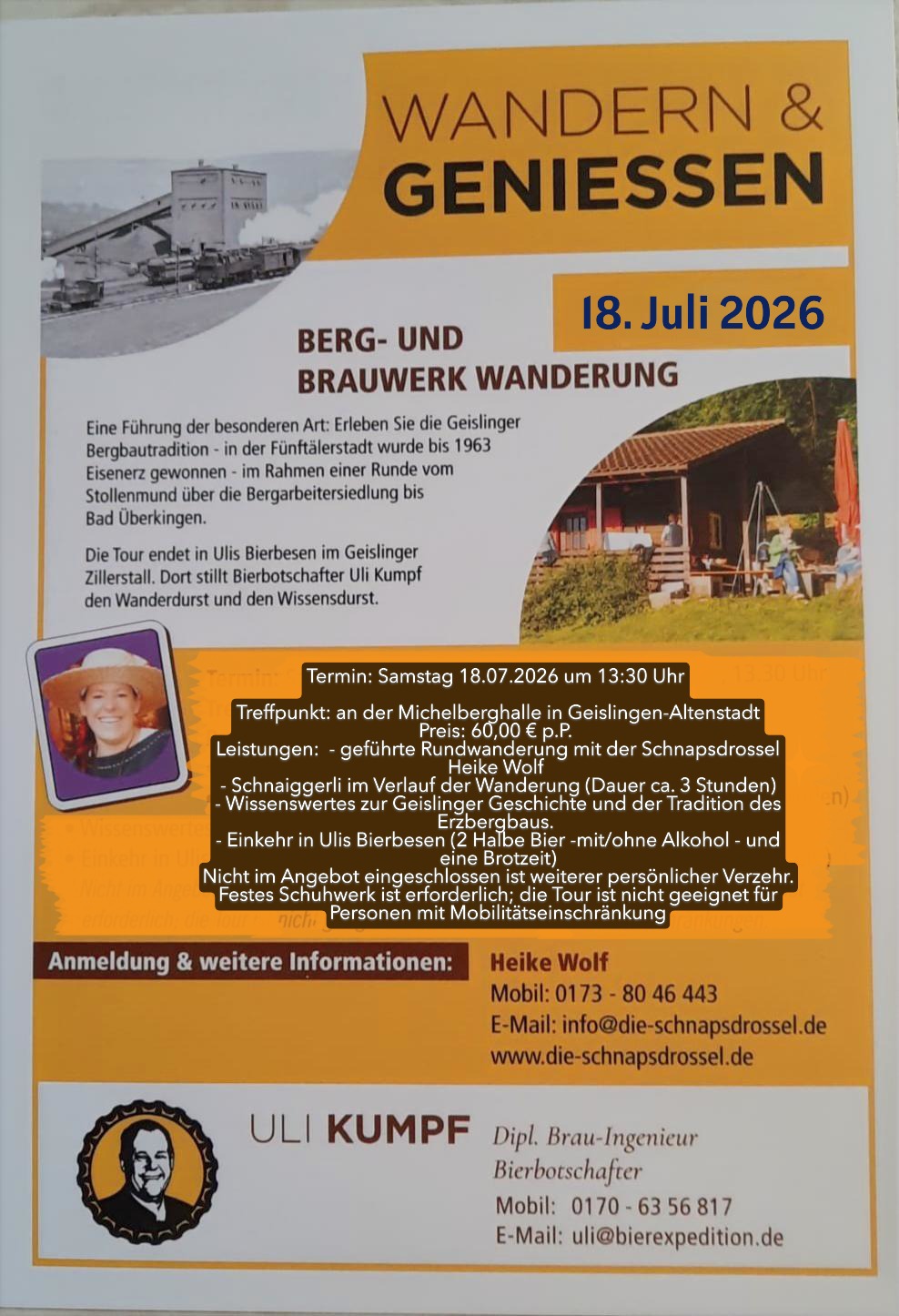 Eine Führung der besonderen Art: Erleben Sie die Geislinger Bergbautradition im Rahmen einer Runde ab der Hinteren Siedlung über Bad Überkingen wieder zurück nach Geislingen, wo wir in Ulis Bierbesen in Geislinger Zillerstall den Wander- und Wissensdurst stillen können.