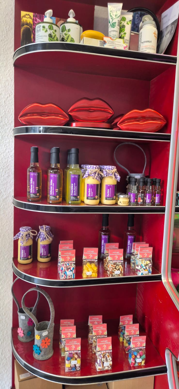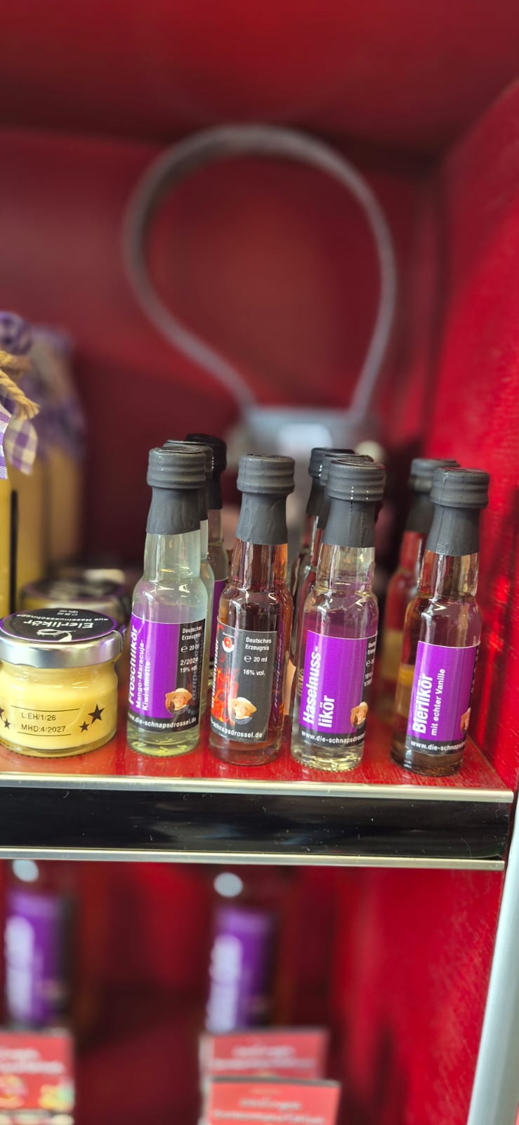Und dann wäre da noch ein ganz besonderer Farbtupfer im Regal: Die Schnapsdrossel – Likörmanufaktur aus Geislingen an der Steige. Von kleinen Fläschli und Gläsli bis hin zu 250-ml-Gebinden bringt sie handgemachten Genuss ins Sortiment – charmant, hochwertig und genau so individuell wie der Store selbst.